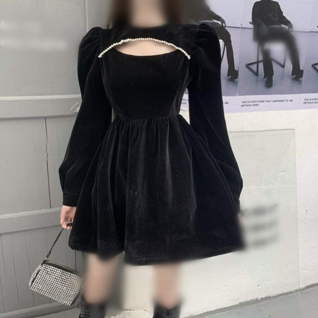 لباس مجلسی زنانه مشکی عروسکی کوتاه مخمل